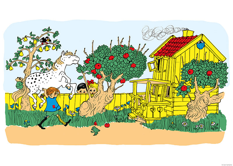 Denna affisch avbildar Pippi Långstrump framför Villa Villekulla, illustrerad av Ingrid Vang Nyman. Med måtten 50 x 70 cm är den ett färgglatt tillskott till barnrummet eller för alla som älskar Astrid Lindgrens karaktärer.