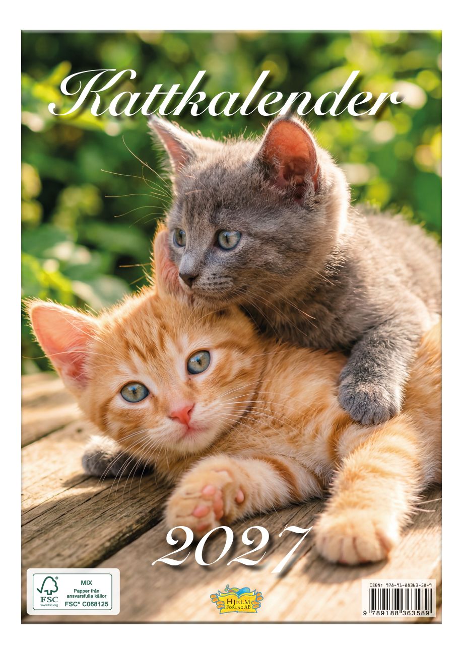Mys, nyfikenhet och mjuka tassar – Kattkalendern 2027 fyller varje månad med charmiga kattmotiv som värmer hela året om. Med vackra fotografier av katter i alla former och humör är den lika hemtrevlig på kylskåpet som på väggen. Kalendern är tryckt på FSC-certifierat papper och innehåller svenska namnsdagar och röda dagar. Format: dubbel A4.
