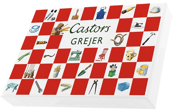 Castors olika grejer återfinns i böckerna om Castor, berättade och illustrerade av Lars Klinting, utgivna på Alfabeta Bokförlag.