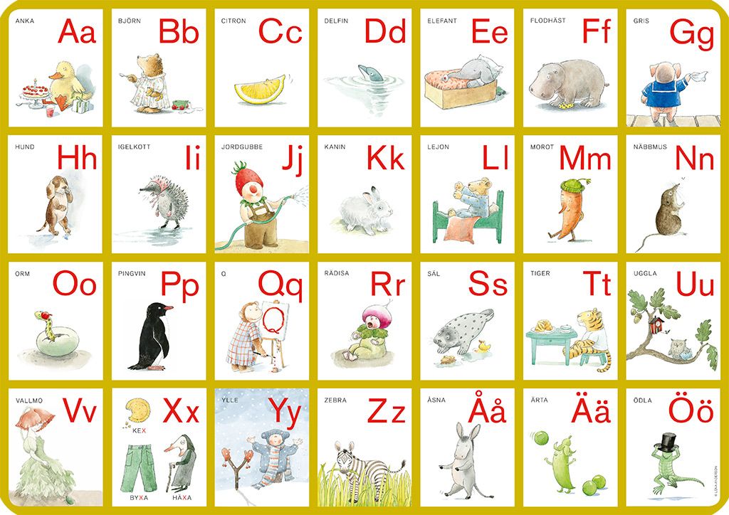 Ett färgglatt underlägg med illustrationer från ABC sa lilla t, där barn får bekanta sig med bokstäver och ord på ett roligt sätt. En pedagogisk och visuell upplevelse.