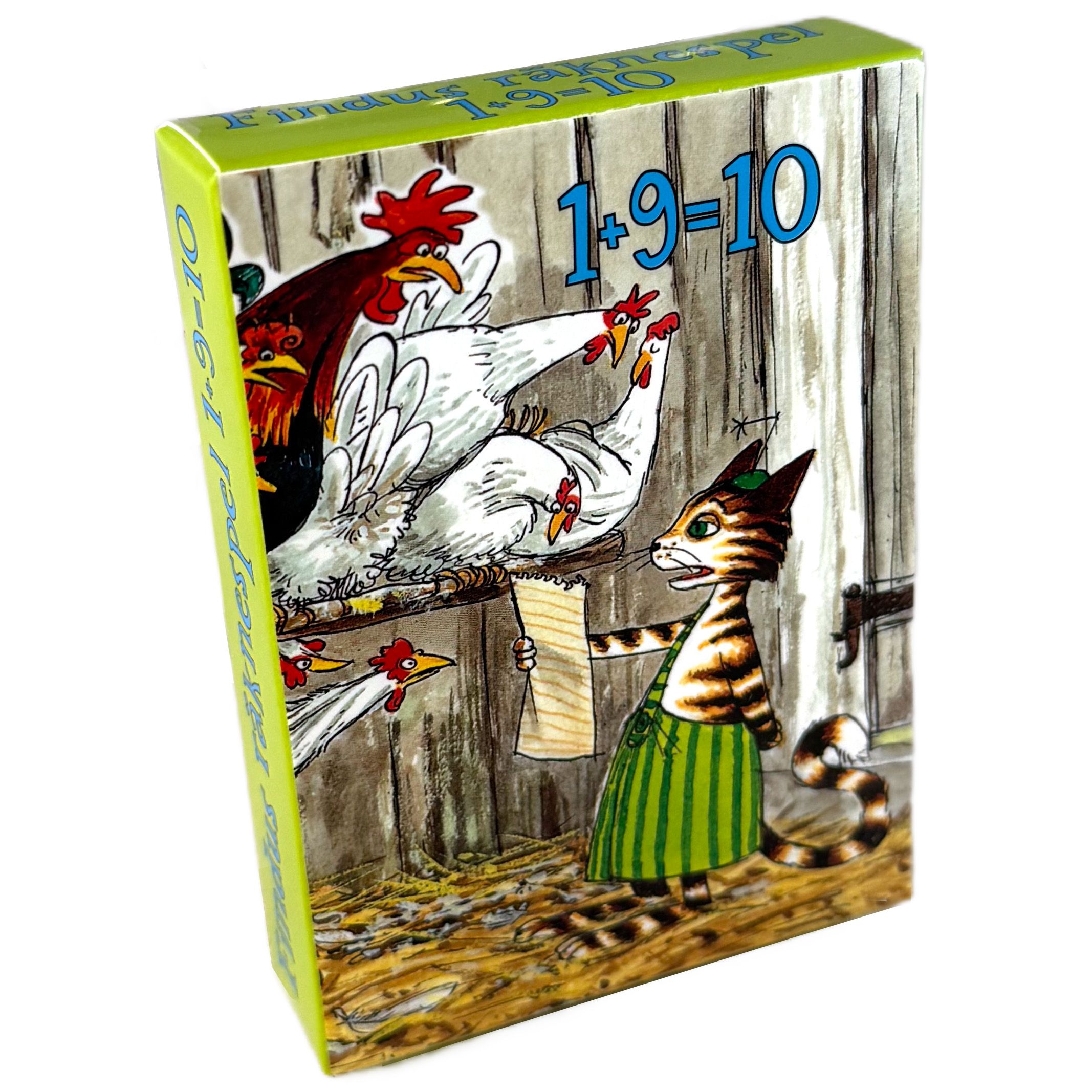 Findus 1+9=10 är ett pedagogiskt kortspel för 2–4 spelare, designat för att göra addition roligt och engagerande för barn. Spelet innehåller 47 spelkort med illustrationer av Sven Nordqvist från Pettson och Findus värld. Findus 1+9=10 är ett utmärkt verktyg för att introducera yngre barn till grundläggande matematiska koncept samtidigt som det erbjuder en rolig och interaktiv spelupplevelse. Findus 1+9=10 är ett pedagogiskt kortspel för 2–4 spelare, designat för att göra addition roligt och engagerande för barn. Spelet innehåller 47 spelkort med illustrationer av Sven Nordqvist från Pettson och Findus värld. Kort och ask med FSC papper.