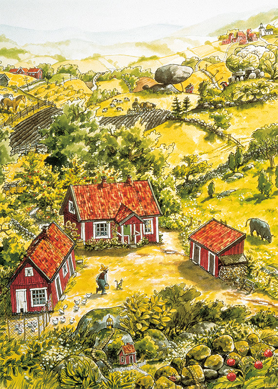 Denna affisch visar en detaljrik illustration av Pettsons gård, skapad av den älskade illustratören Sven Nordqvist. Med måtten 50 x 70 cm är den ett perfekt tillskott för att ge en hemtrevlig och nostalgisk känsla till ditt hem eller kontor.